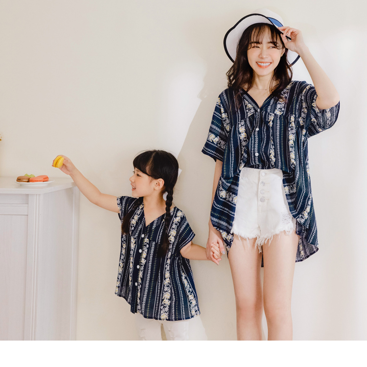 夏日渡假風印花V領排釦上衣(親子裝)夏日渡假風印花V領排釦上衣(親子裝)